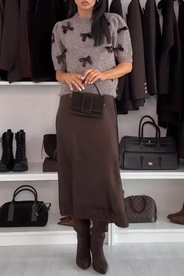 TheCINDY™ | Bow-Detail Knit Sweater is a charming blend of cozy comfort and feminine elegance. Crafted from a soft, warm knit, this sweater features delicate bow accents throughout that add a playful yet refined touch. The short-sleeve silhouette and classic crew neckline make it perfect for transitional seasons, offering warmth without feeling heavy.